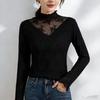 Women's High-End Lace Base Layer Top, Autumn/Winter, Velvet Warmth, Mesh Jacquard Collar, Slightly Sheer, Stylish Design