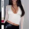 Women's European & American Style Slim-Fit Lace Deep V Long Sleeve Top