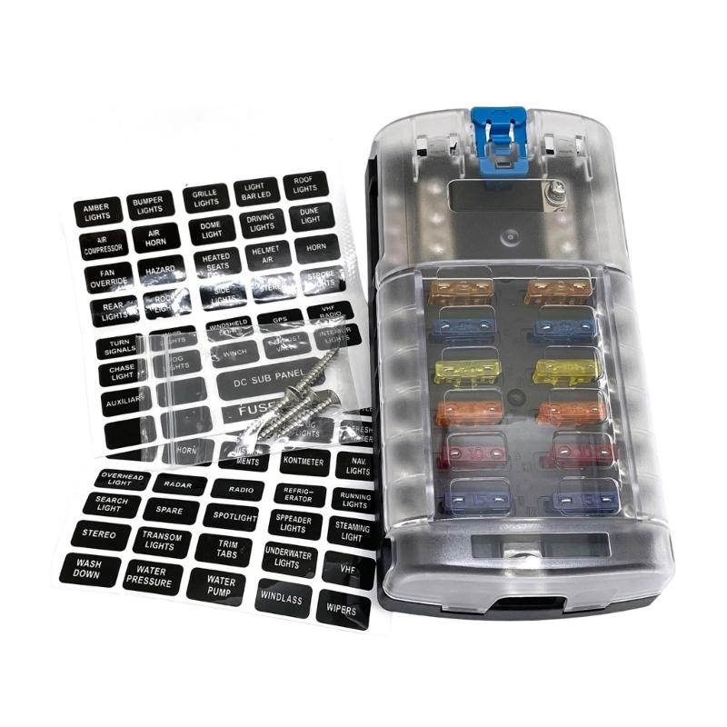 Portable Sturdy 12 Way Fuse Block Box With Negative Busbar for Automotive and Marine Applications Daily Casual Use