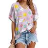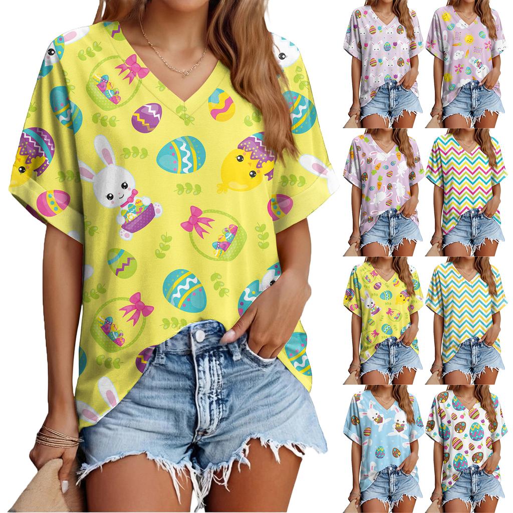 Women's Fashionable Casual Everyday Versatile Easter Print Slim-Fit Summer Short-Sleeve Top