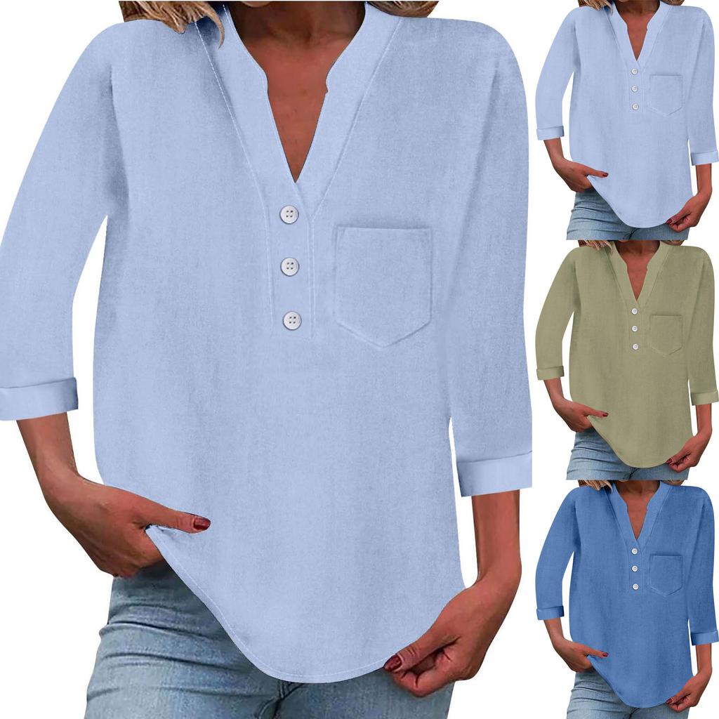 Women's Relaxed Fit Linen Shirt With 3/4 Sleeves