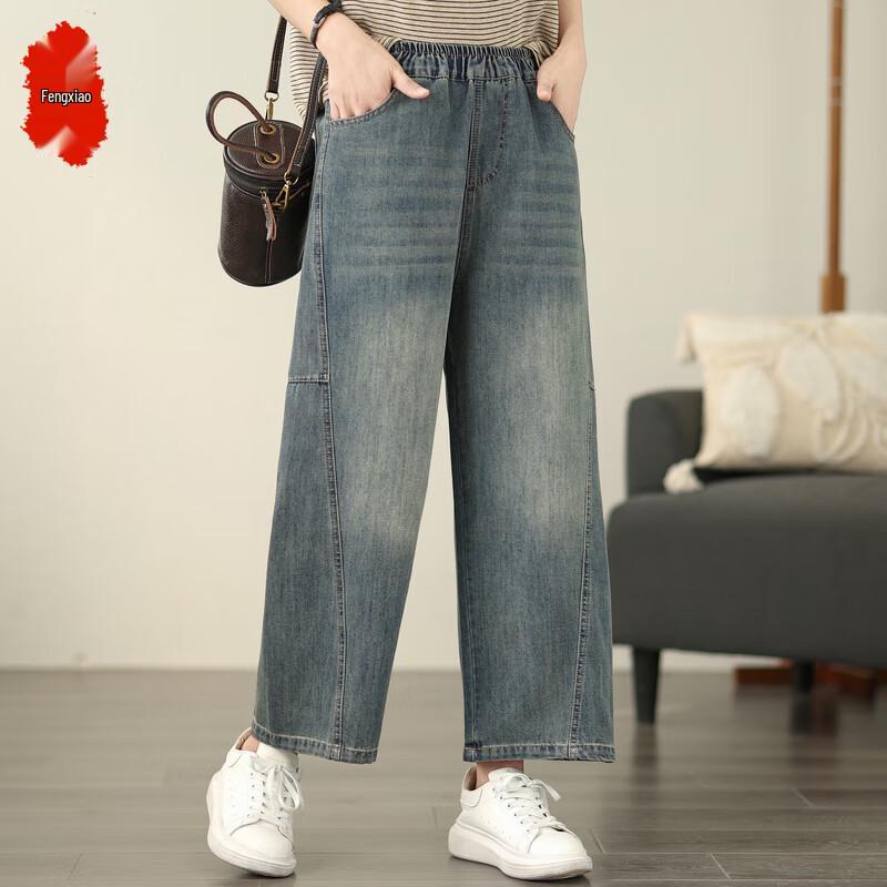 Women's High-Waist Loose Wide-Leg Cropped Jeans
