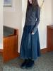 Women's American Retro Korean Style High-Waist Denim A-line Skirt - Washed Blue