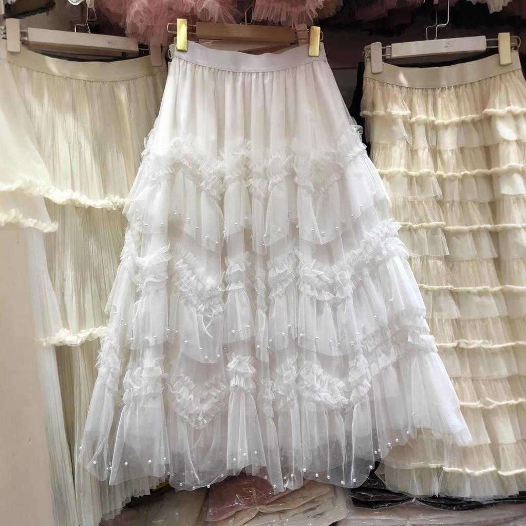 Fustă Midi din Tulle cu Mărgele Stratificate Complex: Rochie de vară subțire și versatilă pentru femei