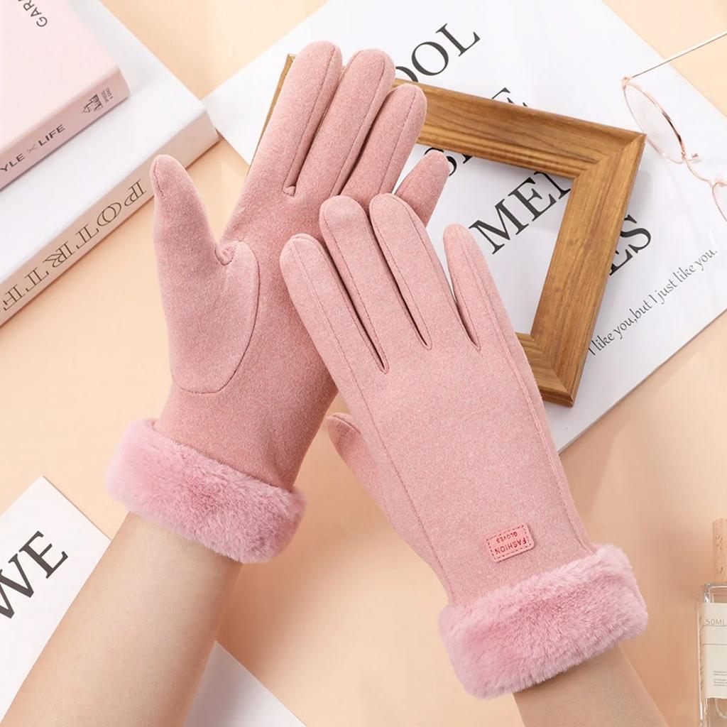 Mănuși groase de pluș de iarnă pentru femei, de modă, din piele intoarsa caldă, în aer liber, mănuși de șofat cu ecran tactil pentru femei, mănuși de ciclism sportiv