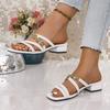 Coarse-heeled sandals women's new square-headed open-toed buttons with thin straps and women's cool slippers