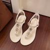 Large size sandals women's new summer wear flat-bottomed rhinestone herringbone foot beach sandals