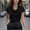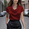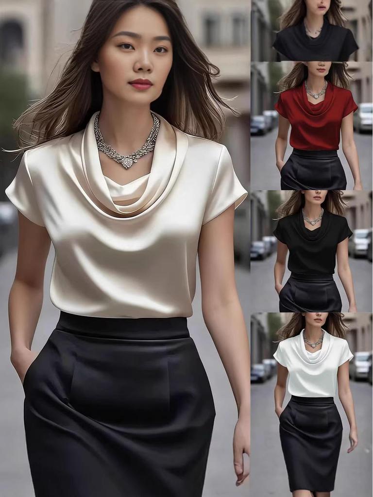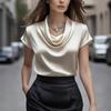 2025 Fashionable Women's Satin Drape French Style Short Sleeve Shirt