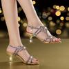 Sandale de vară noi pentru femei, din piele, cu strasuri, decupate în formă de diamant, romane, cu degete deschise, cu toc înalt, sandale pantofi cu gură de pește