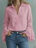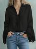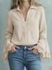 Women's Cotton Linen Lace Trim Pullover Shirt - Elegant Solid Color Design