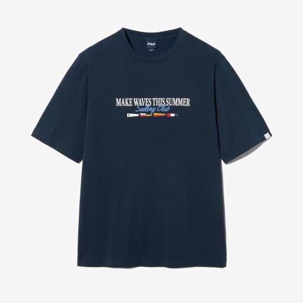 The Fila Sailing Lettering Supima Short Sleeve T-shirt FS2RSH2118X_DNA is a men's sports t-shirt that uses high-quality Supima material to provide excellent moisture absorption and a soft touch. The sailing lettering graphic emphasizes a sporty look and is available in loose-fit or slim-fit styles suitable for various body types.