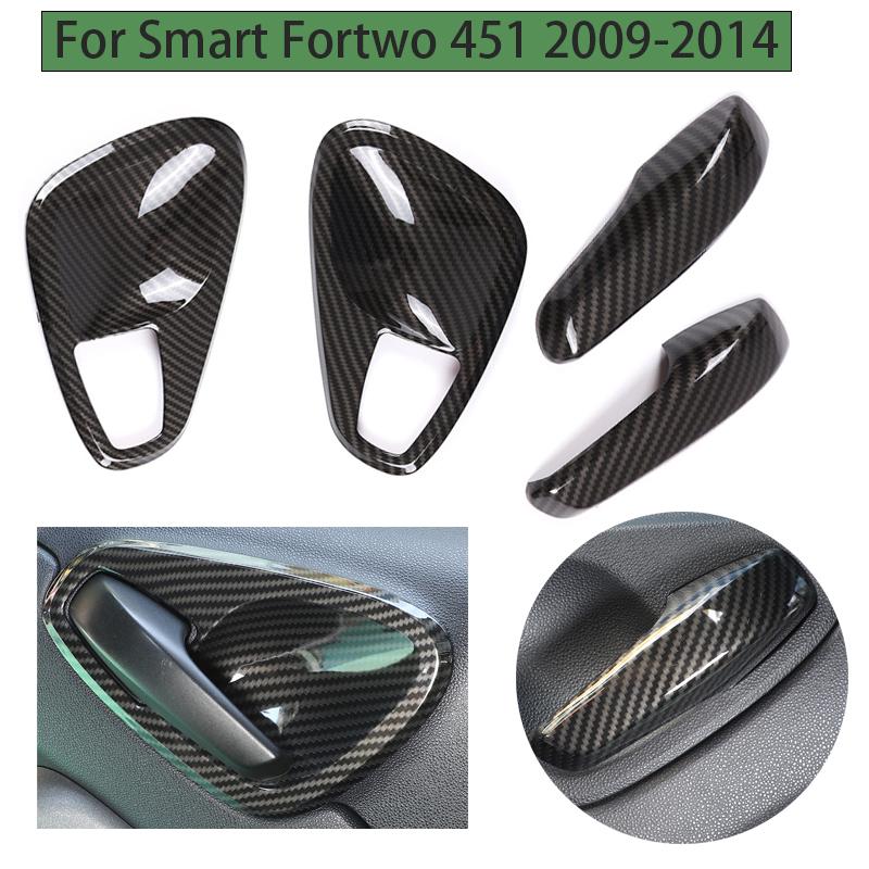 Door Armrest Handle Cover Trim And Door Bowl Frame Carbon fiber Sticker For Mercedes Smart Fortwo 451 2009-2014
