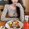 Women's Spicy Girl Polka Dot Color Block Long Sleeve Slim Fit Top - Autumn/Winter