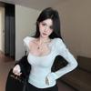 Autumn/Winter Sexy 3D Embroidered Lace U-Neck Slimming Base Layer T-Shirt