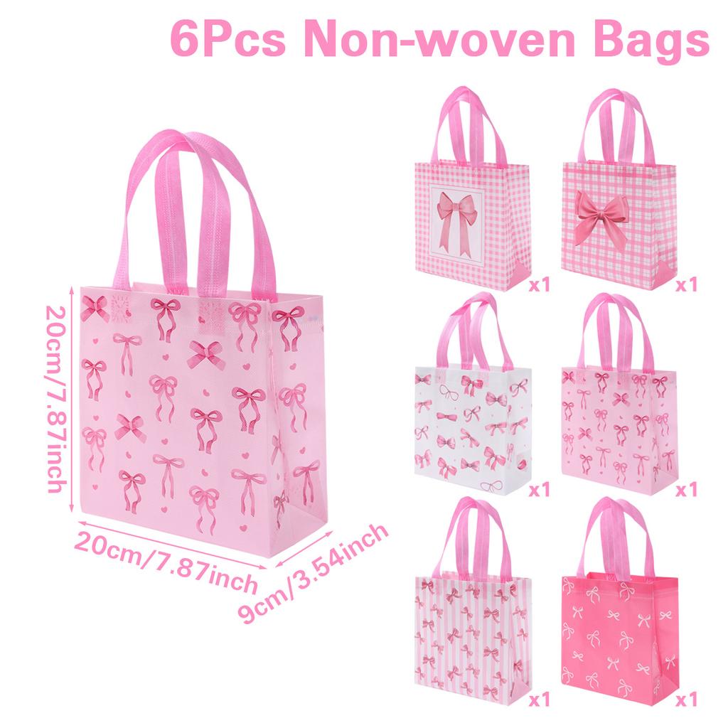 Pink Bow Non-woven Gift Bags Pink Bow Birthday Party Decorations Kids Girls Favors Gifts Handbags Wedding Baby Shower Supplies