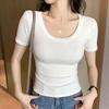 Women's Versatile Ribbed U-Neck Short Sleeve T-Shirt - High-End Feel, Fashionable Base Layer Top