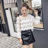 Women's White Round Neck Patchwork Fur T-Shirt, Spring Hollow-Out Base Layer