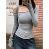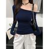 Women's 180g Ribbed Ice Silk Off-the-Shoulder Long Sleeve Top - Autumn Slim Fit, Pure Desire Style