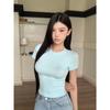 2026 European and American Trendy Women's Cropped Slim-Fit Solid Color Short-Sleeve T-Shirt