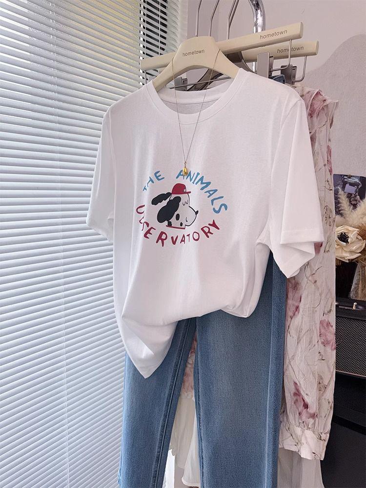 Women's White Cartoon Retro Pure Cotton Loose T-shirt