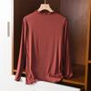 Women's Korean Style Modal Long Sleeve Base Layer T-shirt, Half-High Neck, Plus Size, Thin, Solid Color, Autumn Top
