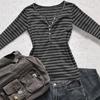 European & American Striped V-neck Long-sleeve Slimming T-shirt - Autumn/Winter Casual Korean Style