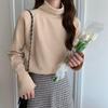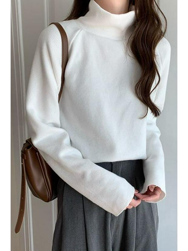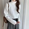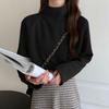 Korean-Style Autumn Loose Mid-High Neck Long Sleeve Shirt for Women - Solid Color Trendy Base Layer.