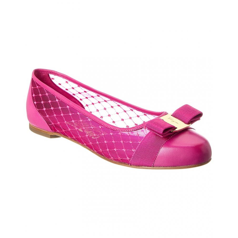 Salvatore Ferragamo Varina Mesh Leather Flat Pink