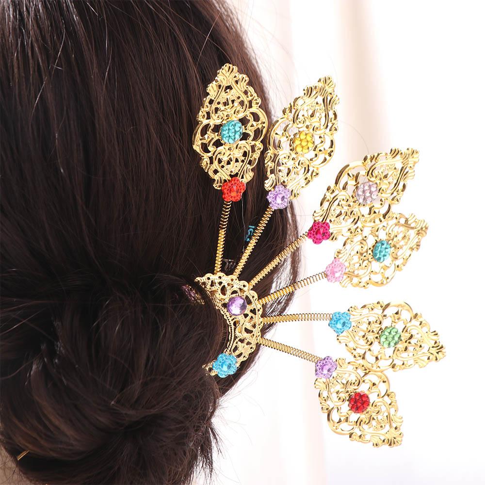 Gold Thai Hair Sticks Flower U-shaped Hair Fork Vintage Thai Metal Leaves Hairpin Women