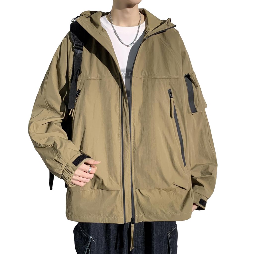 Fasshonrida Softshell Nylon Windproof Cold Weather Hooded Lightweight Outdoor Jacket for and and Tan Size 2XL Men's Water-Repellent Jacket, Outerwear,