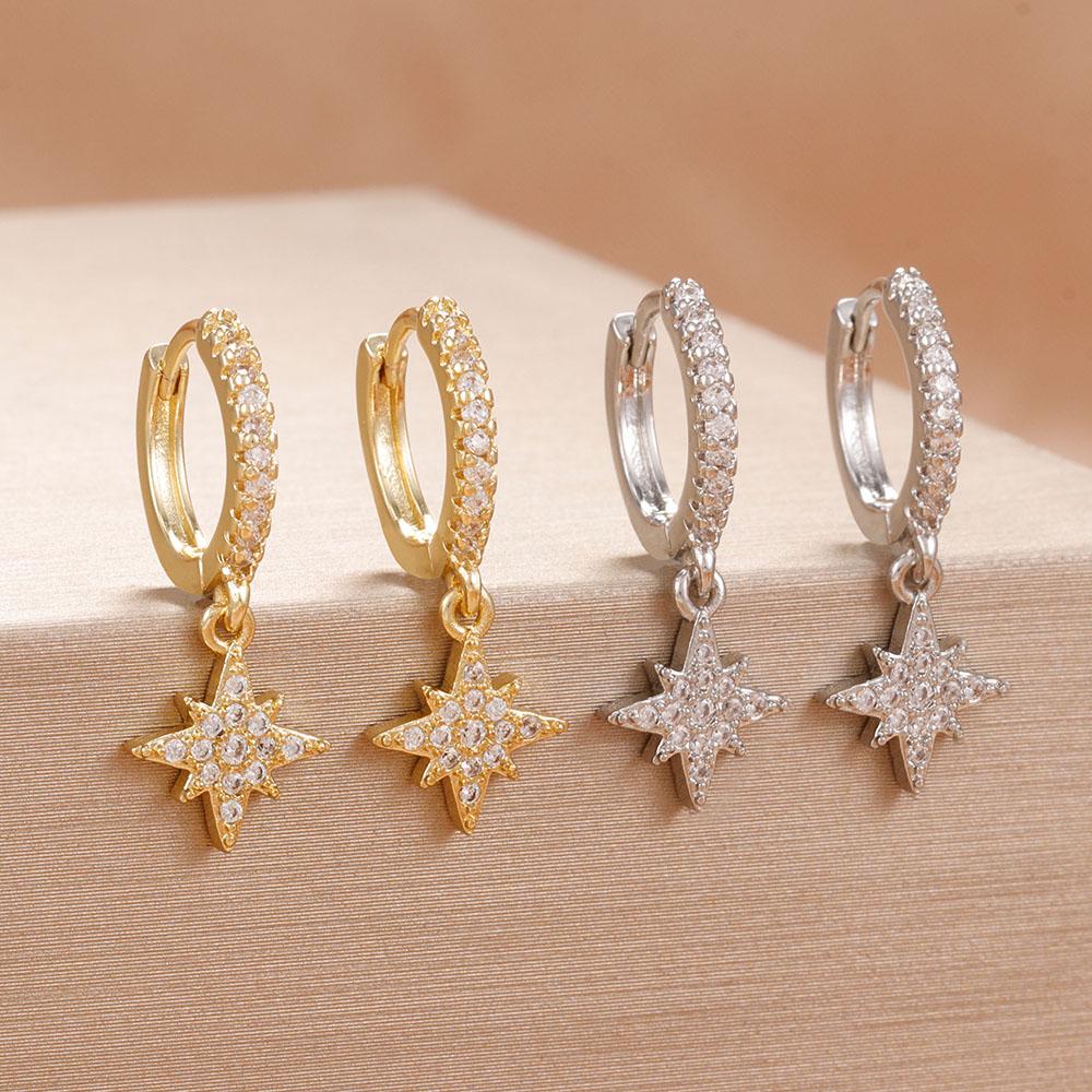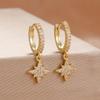 New Star Zircon Stainless Steel Pendant Hoop Earrings For Women 18K Gold Plated Pendientes Wedding Party Jewelry Accessory