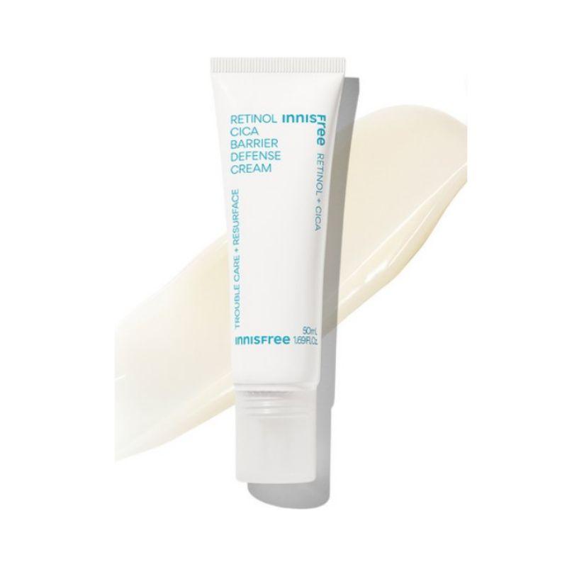 Innisfree retinol cica cream, vegan retinol moisturizer, Korean barrier repair cream, scar care retinol cream, centella retinol skincare, KBeauty sensitive skin retinol, elasticity improving cream