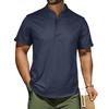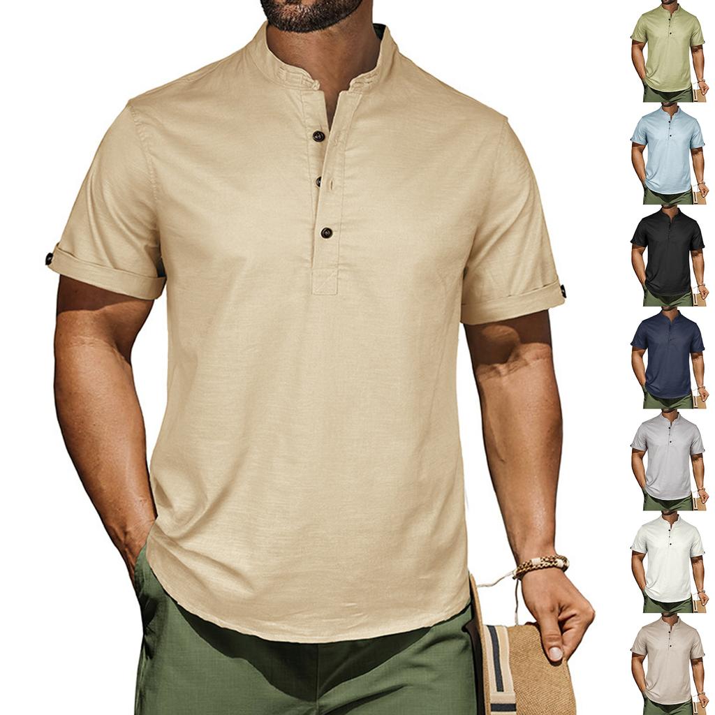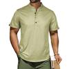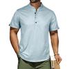 Men's Casual Shirt Short Sleeve Band Collar Linen Shirt Summer Beach Hippie T-Shirts