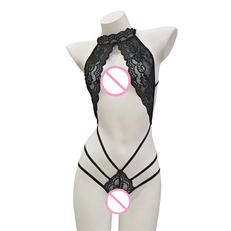Sexy Lace Bodysuit Pure Desire Spicy Girl See through Hanging Neck Backless Lingerie Temptation Set Polyester Mesh Fabric