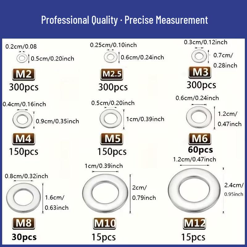 Set de 1320 de șaibe plate din oțel inoxidabil 304