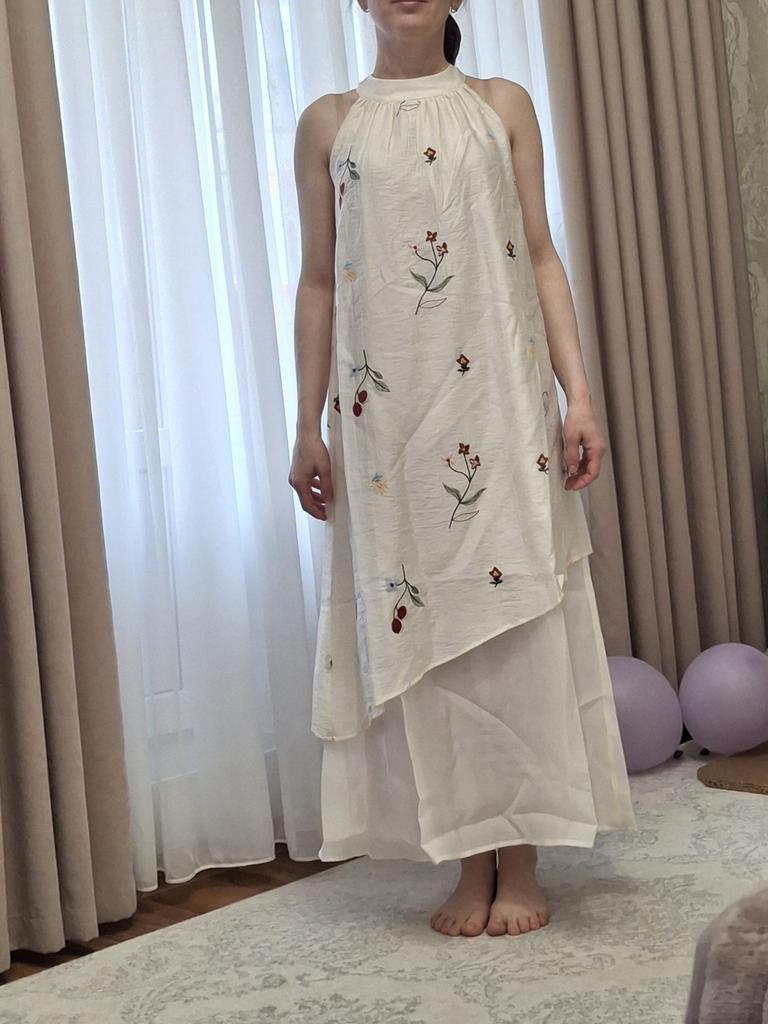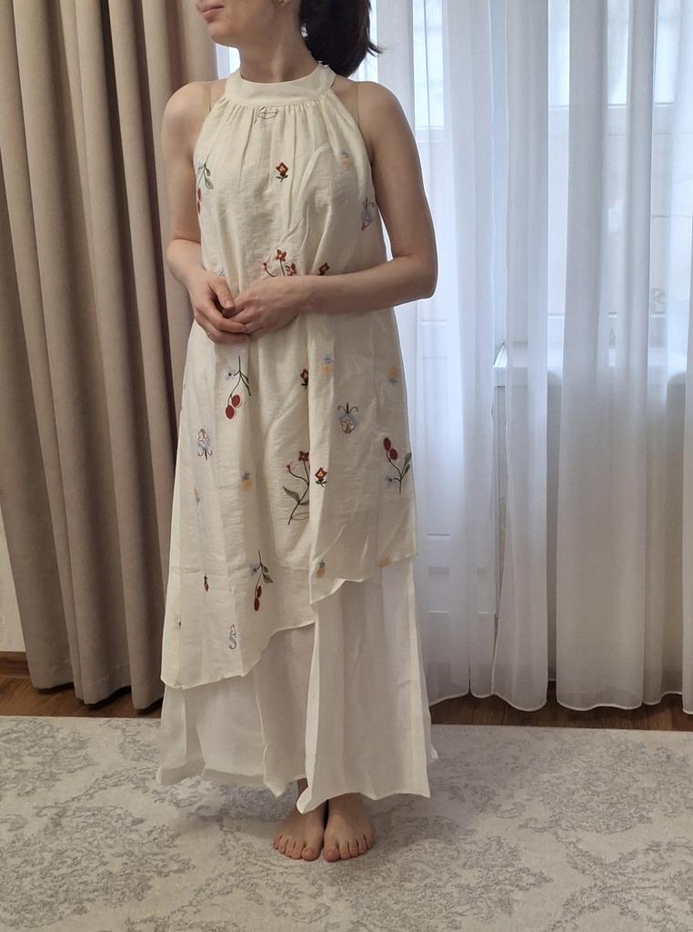 INMAN Lyocell Embroidered Halter Neck Dress