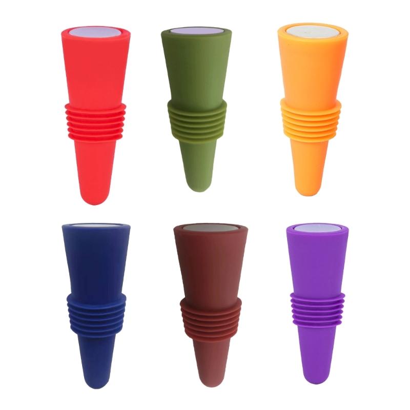 Set Of 6 Silicone Beverage Sealers with Threaded Rings Stoppers for Wine and Beverages Multipurpose Bottle Preservers