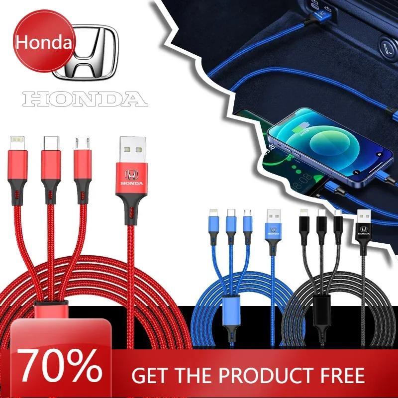 FIT Car New Honda 3 In 1 Type C Lightning Micro USB Car Fast Charging Cable Emblem Car Goods For Honda Civic XR-V HR-V Accord O