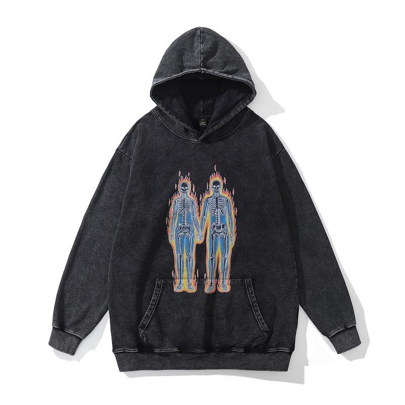 American Retro Hooded Sweater For Men And Women Autumn And Winter Trend Printing Washed Old Hoodies For Men And Women