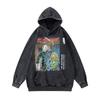 Hanorac Bumbac Gros 430G Negru High Street Imprimeu Distractiv Spălat Vechi Pulover cu Glugă Bărbați