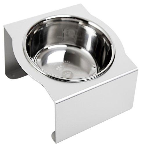 MATUMI Hours Food Bowl Stand, Small, Chrome, Made in Japan, Feed Bowl, Dish Stand, Anodized Aluminum Finish, Reduces Leg and Back Pain