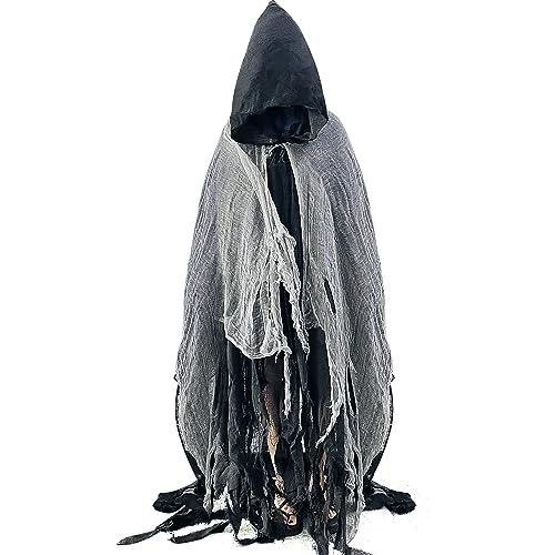 Socpuro Grim Reaper Cosplay Halloween Costume, Long Hooded Cape, 180cm Long, Devil Ghost Costume for Men and Women, Horror, Haunted House, Cool Hallow