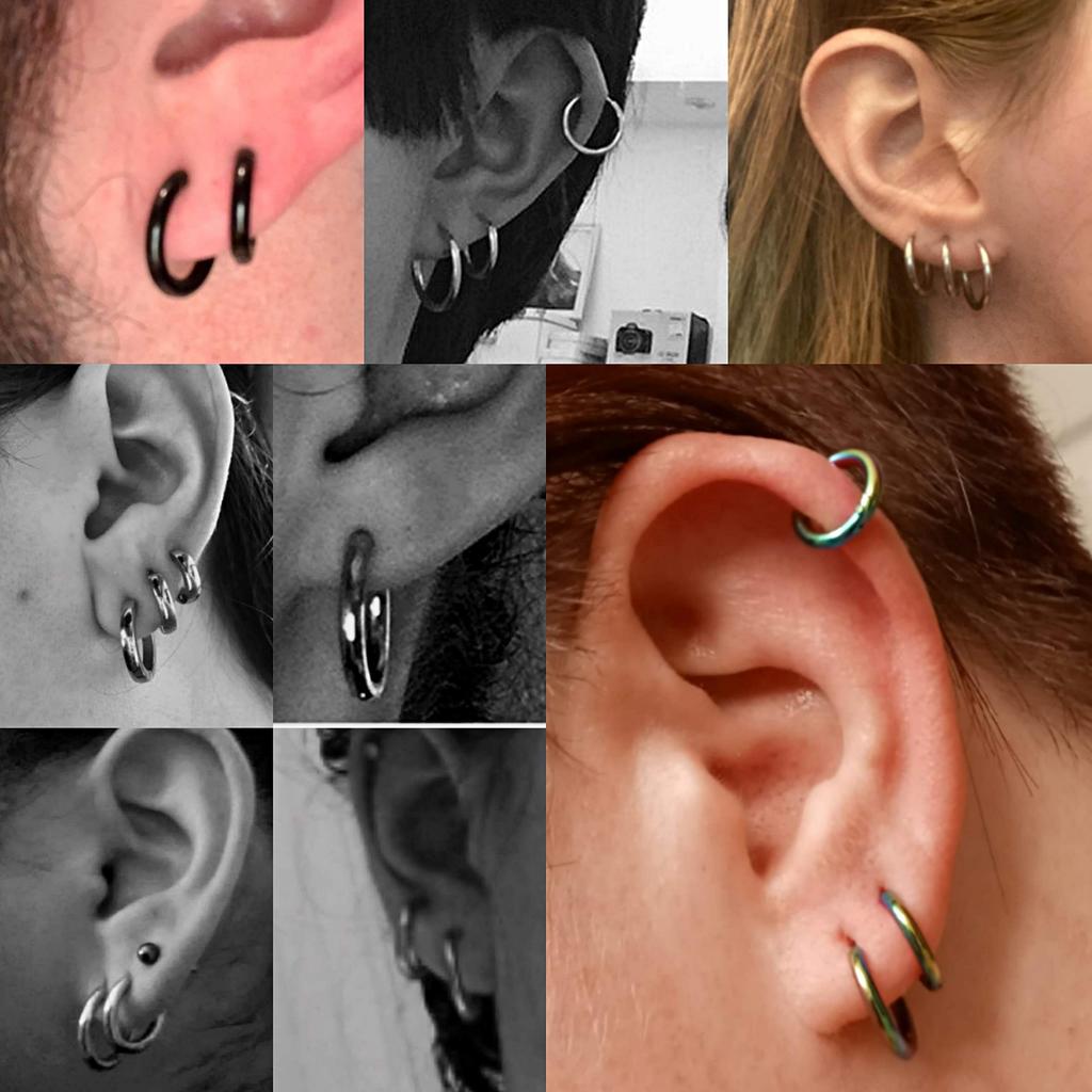 3 Pairs Stainless Steel Hoop Earrings Hypoallergenic Huggie Earrings Small Hoop Sliver Black Sleeper Earrings For Women Men