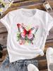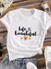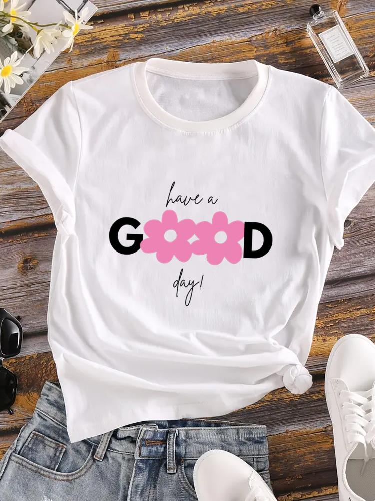 (Asian Size) Lady o-neck T Shirt Clothing flower letter Printed Female Top Casual Fashion Women Graphic Tee Short Sleeve T-shirts