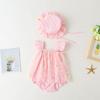 Mesh Flower Baby Princess Dress with Hat Loose Toddle Jumpsuits Baby Climbing Suit Birthday Gift