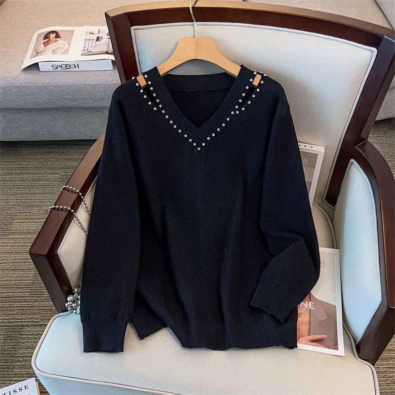 This stylish sweater is crafted from high-quality viscose material with core spun yarn for added warmth and comfort. Designed with a loose fit, it features a flattering V-neckline and long sleeves, perfect for cooler seasons. The mid-length cut, complemented by a slimming design, offers a chic and versatile look that can be dressed up or down for any occasion. Ideal for those who require plus-size clothing options, this sweater is available in a range of sizes to accommodate different body types.