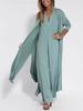 Discover timeless elegance with this sophisticated solid color button two-piece set. Crafted from high-quality polyester fiber, this ensemble offers a soft and comfortable feel, perfect for any occasion. The top features a classic round neckline and long sleeves, providing a chic and versatile style. The matching bottoms complete the look, creating a seamless and polished outfit. Ideal for both casual and formal settings, this set is a wardrobe staple that exudes effortless charm.