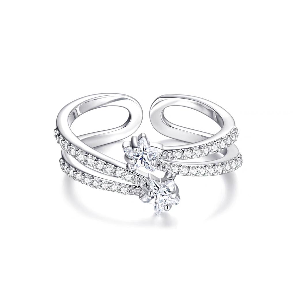 2026 Design Temperament Fashion Double-layer Star Surround Ring Opening Delicate Micro-inlaid Five-pointed Star Ring Women