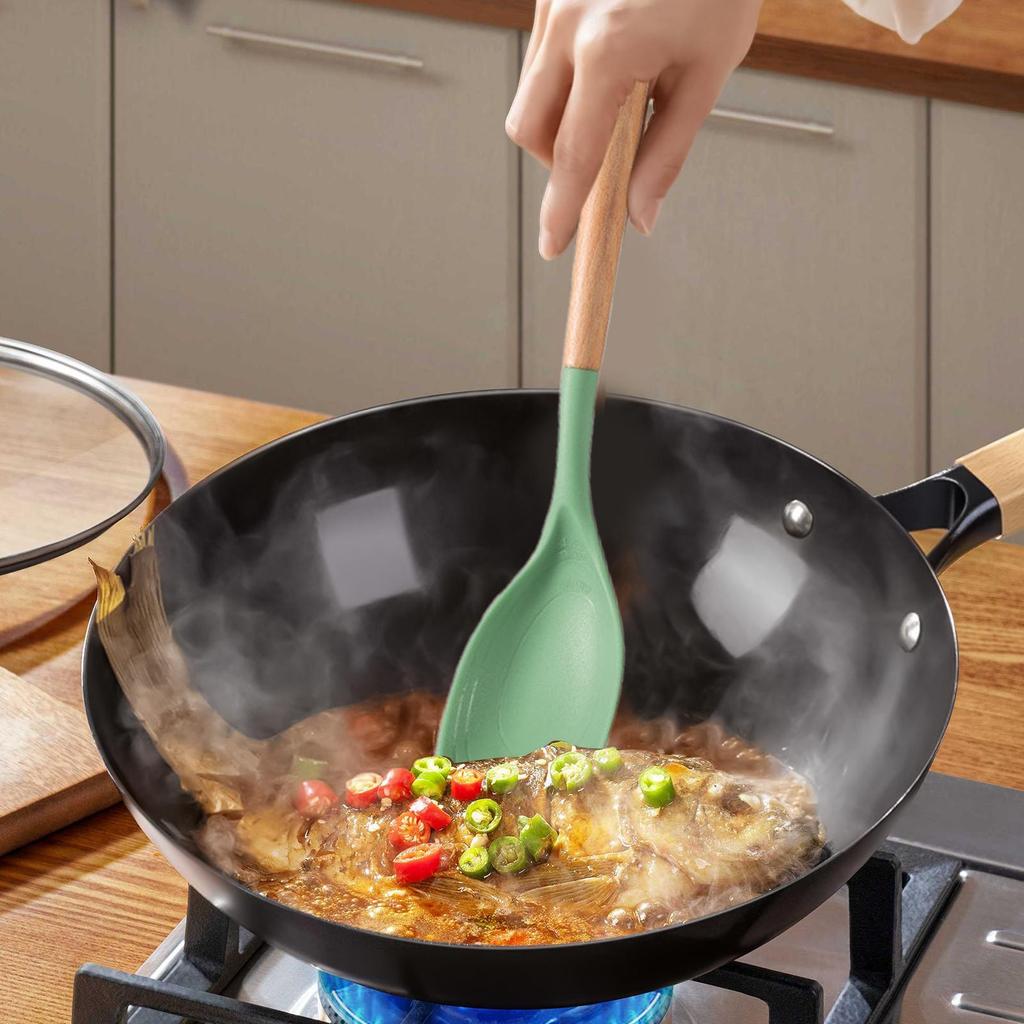 Spoon Spatula Dishwasher Safe Spoon Wooden Handle Kitchen Spatula For Kitchen Baking Mixing Scraping Serving Frying
