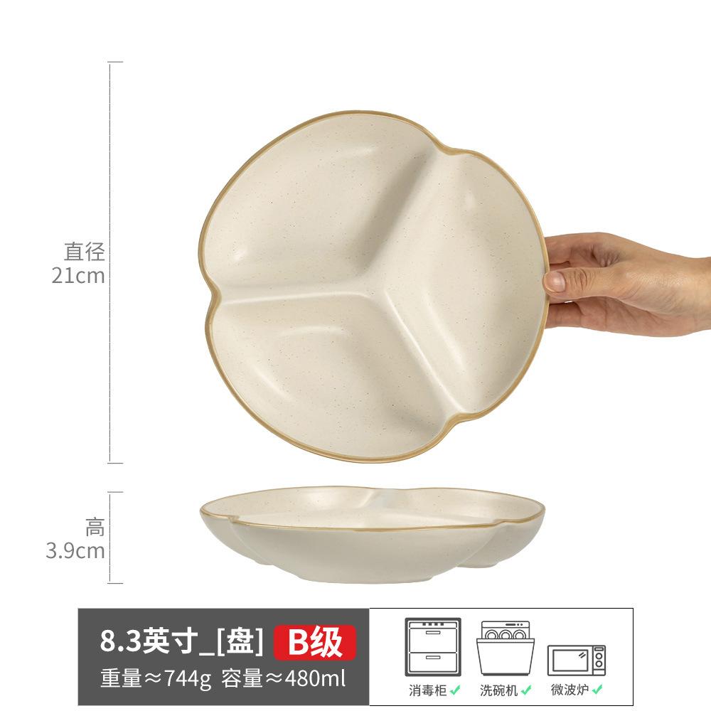 Creative Ceramic Sub-Plate Fat Reduction Quantitative Three-Grid Plate Simple Wind Fruit Plate Breakfast Plate Children'S Household Plate